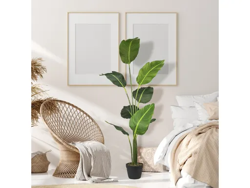 There are three methods for obtaining the perfect Bird of Paradise. Two ways, growing or buying one, result in following a long regimen of do’s and don’ts which if not followed will result in expensive dissatisfaction. The third is opting for this faux 5-foot-tall Bird of Paradise which needs little to no personal oversight or care. Bring home the 60-inch-tall tree with large variegated green leaves sprouting from an upright stalk set into its own plastic container and simply take it out of the box and place it where it dresses up your home or office. Easy, peasy. The colors will not fade and no water ever needed – a no muss, no fuss friend in your personal paradise for life. If you want, give a thought to swapping the plastic container for a dressier one of your own choosing.
