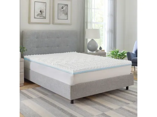 Rejuvenate your mattress with enhanced support and refreshing comfort found in the Reversible Memory Foam Mattress Topper. The dual layer construction allows you to choose between two sides of support. One side consists of plush AeroFusion memory foam to offer supportive spinal alignment and relieve pressure points and is infused with gel to promote heat dissipation. The opposite side features five zones of convoluted foam to evenly distribute body weight to provide the correct amount of support for each section of the body while allowing for maximum airflow. The odor free memory foam meets CertiPUR-US standards for content, emissions, and durability for long lasting comfort. Each mattress topper is backed by a 5-year limited warranty.