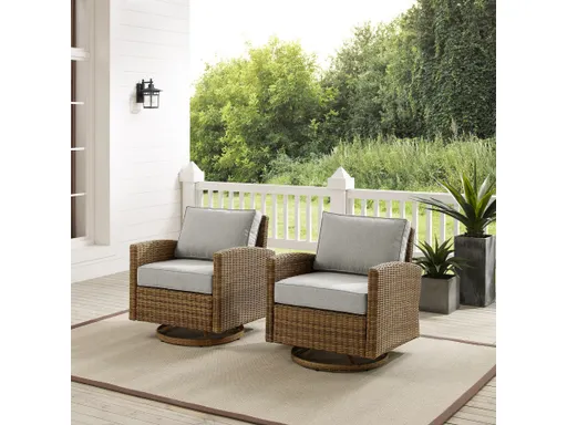 Outdoor lounging gets an upgrade with the Bradenton 2-Piece Swivel Rocker Chair Set. Featuring a sturdy steel frame wrapped in beautiful resin wicker, each patio chair offers a high-quality rocking and swivel base for smooth, easy motion. With gently arched arms and moisture-resistant cushions, the Bradenton Swivel Rocker Chairs are made for comfort without sacrificing style. Great on their own or paired with the rest of the collection, these chairs are a perfect addition to your outdoor retreat.