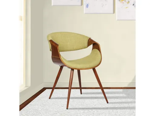 The Armen Living Butterfly modern side chair is a wonderful addition to the contemporary kitchen or living room setting. This mid-century style dining chair features a comfortable curved back upholstered in beautiful fabric. The arms of the Butterfly are curved extensions of the back, making this chair a truly unique and stylish piece. To ensure both sturdiness and natural beauty, the Butterfly is fitted with walnut finished metal legs. This piece is unique and catching that you can play up or down in any room in your home. It is the perfect size for small spaces such as dorm rooms or apartment or it can be used to entertain large gathering in style. The medium high cushion open back is ideal for posture alignment and an unmatched support for days on end. We mimic our butterfly collection by drawing inspiring on how butterflies move across the open field, fluidly and delicately just like the design and look of this collection. This is item is reminiscent of how alluring and delicately a butterfly moves. The foundation of the product is supported by solid walnut wood for a sturdy and stylish aesthetic without comprising practicality and functionality of this item. This item is a versatile piece that can be ideal for dining, kitchen or even home office desk chairs. This product ships in one box with easy and quick set up. We stand by the quality, the craftsmanship and the integrity of our product by offer 1-year warranty for all our products. The style and sophistication of this contemporary piece is sure to impress and comfort. The Butterfly is available in blue, charcoal and green. Product Dimensions: 21"W x 22"D x 29"H SH: 18"