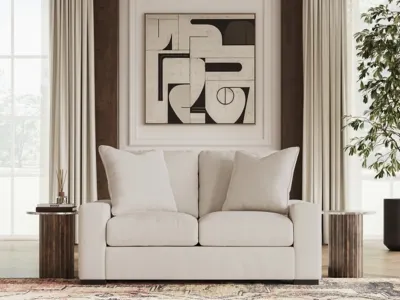 A tailored approach to enduring comfort and versatility. The Calden loveseat unites a sculptural silhouette with soft oyster white boucle to create the essence of quiet sophistication. It elevates your space while creating a genuinely inviting centerpiece for your home.