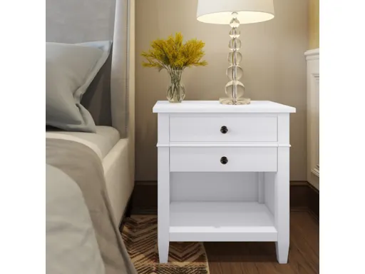Good things really do come in small packages. Nothing could illustrate this better than the design of this bedside end table which features two drawers and an open storage area. The table is sized perfectly to allow room for a table lamp, book and family photos. This flexible piece can be used as a bedside table, side table, end table or in multiple other settings.