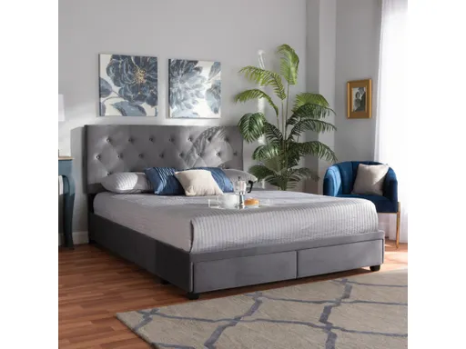 Transform your bedroom into a glamorous sanctuary with this bed. This chic bed is upholstered in a lavish velvet fabric that provides ample comfort for you to lean against as you read or watch TV. Button tufting on the headboard adds an extra touch of elegance and accentuates the stunning sheen in the velvet. Stylish and practical, it’s fitted with two drawers in the footboard with space to store clothes, sheets and more.