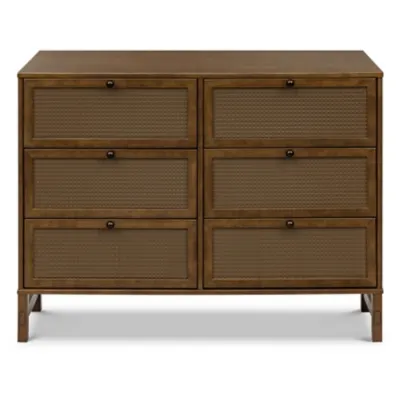 Complete your nursery's elegant ensemble with the Margot 6-Drawer Dresser, a harmonious companion to the Margot Crib. With its clean lines and refined details, adorned with exquisite pressed cane accents that exude sophistication and charm, this dresser offers both style and functionality. Its generous storage space provides ample room for organizing your baby's essentials, while the smooth-gliding drawers ensure effortless access to everything you need. The Margot Dresser not only adds a touch of sophistication to your nursery but also offers practicality that simplifies your daily routines.