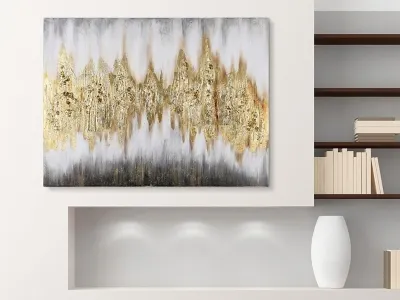 Artist Martin Edwards loves the texture and feel of paint and the sensuous beauty of color and tries to make the most of these two elements in his original works of art. This specific style shouts movement and mood as it moves across the canvas and the color only serves to intensify the emotion displayed. This piece uses subtle variations in technique and metallic color combinations to display a three-dimensional, hand-painted, piece of art that displays an abstract, silvertone and goldtone work of art that is embellished with gold leaf.
