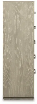 The Fawnburg chest of drawers has a clean, contemporary design with a relaxed sensibility. Its sturdy silhouette sports a trend-right gray taupe finish. The streamlined design includes five soft-closing drawers with fully finished boxes. Classically luxe metal bar pulls with an aged pewter-tone finish complete the look.