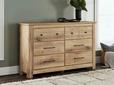 Looking to create a bedroom that feels airy and beautifully put together? The casually comfy Fenderport dresser is your perfect solution. Its clean lines, replicated oak grain and on-trend natural finish exude a charming cottage-inspired feel that brightens your restful retreat. Spacious drawers with dark bronze-tone knobs stow away clothes and more. Now there’s a fresh take on country living we can get behind.