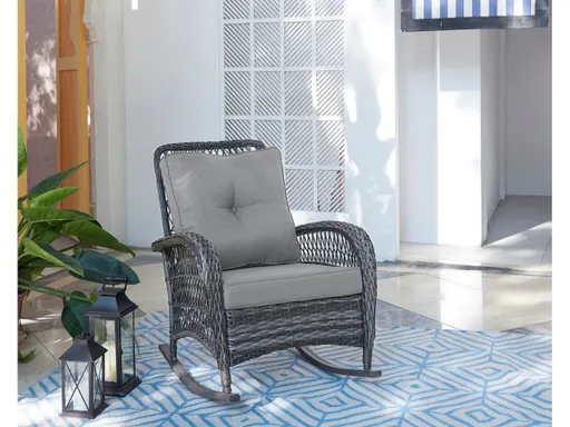 It's a new era and the rocking chair is back with a bang. A modern and improved version that's still inviting with all the neighborly feels puts the Fruttuo at the top of your outdoor favorites. Crafted from timeless rattan, the rocking chair is classic and cozy, with curved edges and the comfiest cushioning to draw you in. Catch up on reading, journaling and the lost art of relaxation with the chair that takes you back to simpler times. Out on the front porch or the back patio, wherever it sways, this chair is sure to please.