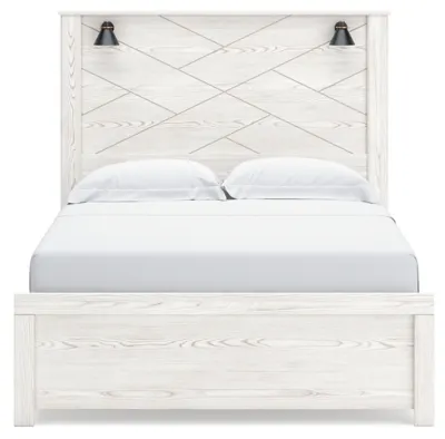 Cool, clean and casually modern. The Gerridan bedroom package’s wispy whitewash and gray finish sets the tone for your calming sanctuary. Large linear drawer pulls add dimension and authenticity, while the abstract headboard design brings a fresh look to the set.