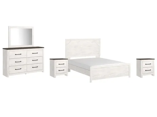 Cool, clean and casually modern. The Gerridan bedroom package's wispy whitewash and gray finish sets the tone for your calming sanctuary. The bed’s framed elements and cross-brace accents add dimension and authenticity to its simply stunning profile. Smooth-gliding drawers on the storage pieces neatly accommodate your storage needs.