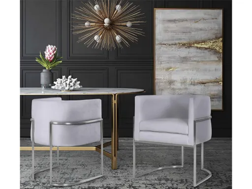 Fabulously chic and demanding attention, the Giselle dining chair dazzles from any angle. Designed to appeal to the most discerning tastes, it boasts a rich velvet upholstery supported by a stainless steel frame, making it both stylish and comfortable.