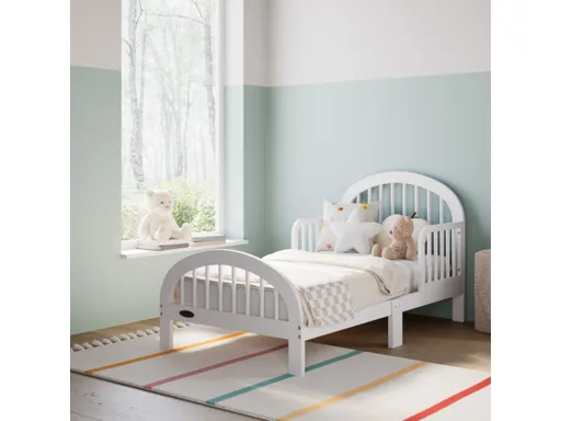 Facilitate your child’s seamless transition from the crib to their inaugural “big kid” bed with the Graco Olivia Toddler Bed. This exquisite bed embodies gentle curves, rounded details, and an effortlessly adaptable arched design, imparting a touch of sophistication to any bedroom setting. Meticulously tailored for toddlers, the Graco Olivia Toddler Bed not only epitomizes style but also promises effortless assembly and comes equipped with toddler guardrails for added safety. Meticulously crafted from durable pine wood, the Graco Olivia Toddler Bed meticulously adheres to or surpasses the stringent ASTM and CPSIA safety standards, guaranteeing your child’s well-being. Moreover, it proudly holds the esteemed GREENGUARD Gold Certification, signifying its rigorous screening for over 10,000 chemicals and VOCs to ensure superior indoor air quality. Rest assured, the Graco Olivia Toddler Bed bears the esteemed JPMA Certification, having undergone comprehensive testing by third-party accredited laboratories to exceed all pertinent safety regulations. Complemented by toddler safety guardrails featuring dowels on each side, this bed offers enhanced security for your little one. Compatible with any standard full-size crib and toddler mattress (Graco toddler mattress recommended), the Graco Olivia Toddler Bed delivers versatility and convenience. Graco takes pride in earning the coveted Parent Tested Parent Approved (PTPA) Seal of Approval for nursery and children's bedroom furniture, underscoring our unwavering dedication to excellence and safety. Enjoy peace of mind with the 1-year limited manufacturer's warranty, knowing that your child's bed is backed by our pledge to deliver enduring quality and reliability. Please note that assembly is required, and the mattress is sold separately. Toddler safety guardrails are included to ensure your child's safety and comfort as they transition gracefully to their “big kid” bed.