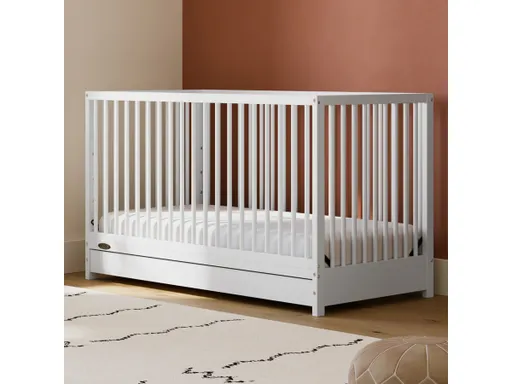 Bring your dream nursery to life with the Graco Teddi 5-in-1 Convertible Crib with Drawer. With its clean, modern, and timeless design, the Teddi is the perfect addition to any nursery, and easy to match with any style. The Teddi is crafted from pine wood, poplar dowels, wood composites and includes Euro drawer glides, and its applied finish has been tested to meet or exceed the applicable ASTM and CPSIA safety standards. The Teddi is GREENGUARD Gold Certified, Certified products are screened for more than 10,000 chemicals and VOCs known to pollute indoor air. Also, the Teddi is JPMA Certified, meaning it's been expert tested by third-party, accredited laboratories to meet or exceed all of the applicable category voluntary and mandatory safety standards. Designed to adapt to your growing baby, the Teddi is equipped with an adjustable mattress support base with 4 different height options so the mattress support base's position can be lowered as your child grows (please note, this crib may only be used until your child can easily climb out or is taller than 35 inches (89 cm). To support your child's journey from babyhood to toddlerhood and beyond, the Teddi is able to be converted from a crib to a toddler bed (compatible with 1 or 2 toddler guardrails, each sold separately), daybed, and full-size bed with headboard and optional footboard (compatible full-size conversion kit sold separately). The Graco Teddi 5-in-1 Convertible Crib with Drawer is designed to accommodate any standard full-size crib & toddler mattress (mattress sold separately, we recommend any Graco crib mattress). Graco is the proud recipient of the Parent Tested Parent Approved (PTPA) Seal of Approval for nursery and children's bedroom furniture, and the 2023 Women's Choice Award for 9 out of 10 Recommended Baby & Kids Furniture. Backed by a 1-year limited manufacturer's warranty. Assembly required. Mattress sold separately.
