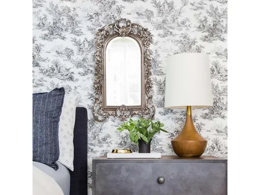Our Sherwood Mirror is a lovely piece with Baroque styling. The arched glass mirror is surrounded by a very ornate, open work frame. The frame is then finished in a lovely antique silver leaf. It is a perfect focal point for an entryway, bathroom, bedroom or any room in your home. D-rings are affixed to the back of the mirror so it is ready to hang right out of the box! The mirrored glass on this piece has a bevel adding to its beauty and style.