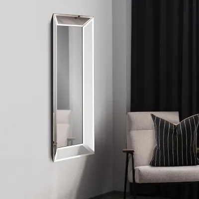 This striking piece features rectangular mirrored frame that is pitched, flaring away from the wall. Each mirrored section is beveled adding to its style and beauty. It is a perfect focal point for an entryway, bathroom, bedroom or any room in your home. D-rings are affixed to the back of the mirror so it is ready to hang right out of the box! The Vogue Mirror can be hung in a horizontal or vertical orientation. This mirror is sold as one unit. Additional mirrors are sold separately.