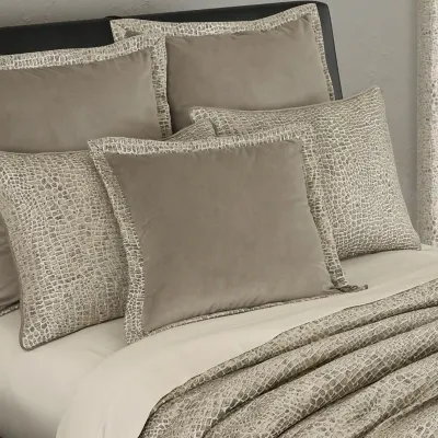 The Habitat 20" Decorative Throw Pillow features a plush velvet fabric, paired with an embossed flange construction. The soft champagne, pewter, and taupe tones add a sophisticated, contemporary edge, while the shimmering finish brings subtle glamour. Pair this statement pillow with the Habitat bedding set by J. Queen New York for a clean modern look. 20" x 20".