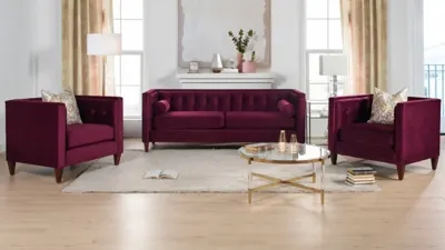 For a bold, modern statement to your living room decor, look to the Jack Seating Collection by Jennifer Taylor Home. The traditional tuxedo silhouette gets a modern makeover in this perfectly square button-tufted design, with tapered wood legs and a geometric silhouette reminiscent of the Chesterfield style. The medium-firm seat cushions are completely removable and reversible, and are set off stylishly with two accent bolster pillows.