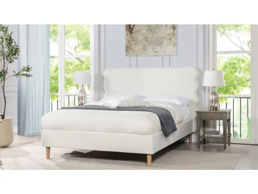 Combine casual comfort with style with the Stockholm Bed Collection by Jennifer Taylor Home. The unique curvy headboard is pared down with the simple, elegant platform frame and complemented with natural wood legs. Whether as a casual statement in the master suite or guest room, the Stockholm bed is fun and understated style.