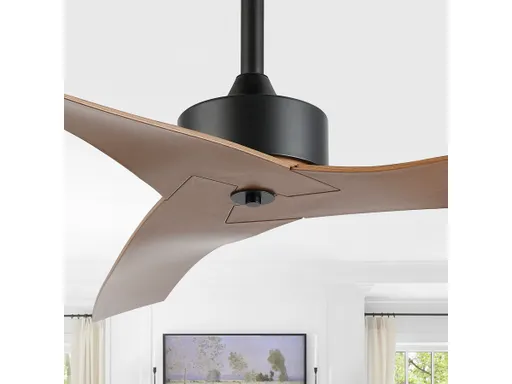 Our 50" ceiling fan has clean lines and a modern, three-blade design that resembles a propeller. With no bulky light fixture, this fan has a sleek, contemporary look. The handy remote control lets you time an automatic shutoff and control airflow rate.