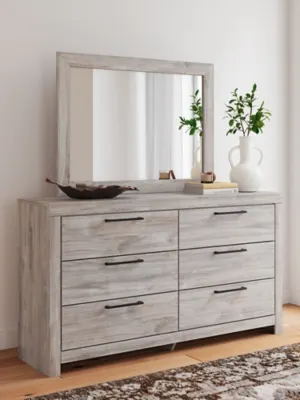The bright and airy Jonnifer dresser with mirror evokes the tranquil vibe you long for in your dream destination. Its light gray finish over replicated oak grain whispers “inviting" and "relaxed.” Six roomy drawers with contemporary handles offer easy access to hidden storage for cozy sweaters, casual tees and so much more. Laid-back, practical and versatile, it's a piece you’ll love coming home to.