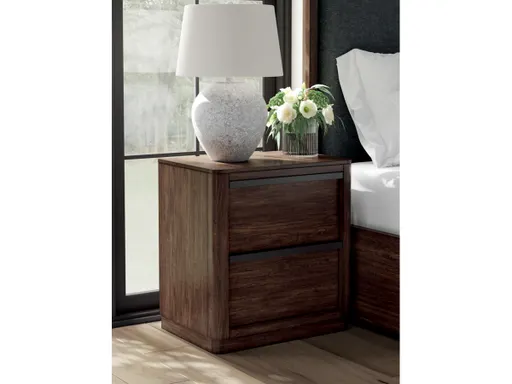 Casual contemporary styling with a decidedly modern vibe. The Kendamor nightstand is warm and inviting with a rich dark brown finish, adorning your restful retreat with on-trend elegance. Full-length metal pulls in a matte black finish add a subtly cool touch to spacious bedside storage drawers. What a simply stunning way to achieve the bedroom of your dreams.