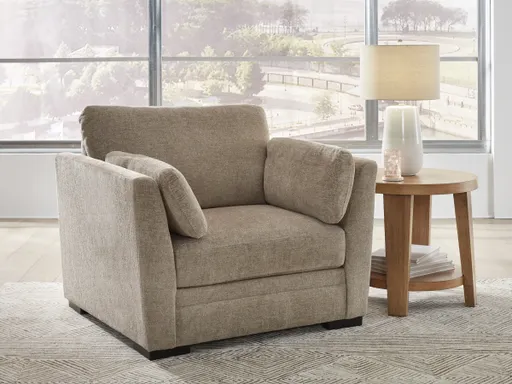 Looking for the perfect blend of decadent luxury and contemporary flair? You've gotta check out the Kimbridge oversized chair. With its plump cushions, plush chenille fabric and softly tapered arms, this piece makes it easy to lounge solo or with a friend in stunning style. Arm bolster pillows are icing on the comfort cake.