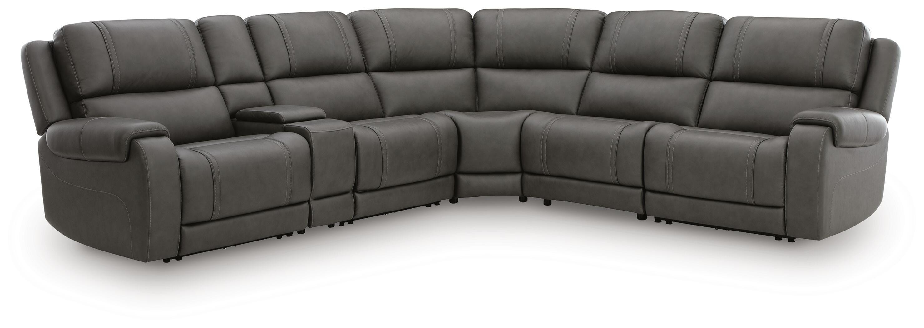 Isn’t it time to discover a whole new level of relaxation? The 5Z-Harrenhurst power reclining sectional is a divine merger of fabulous function and sleek transitional style. One-touch reclining, adjustable headrests and USB charging, coupled with supple leather and skillfully matched faux leather, kick your leisure level up several notches. And the indulgence doesn't end there; heat and massage functions target multiple zones from head to toe. This is more than just a sectional—it’s your personal comfort command center.