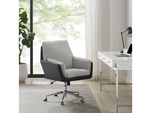 Some claim you can’t be comfortable, relaxed and productive all at once. This office chair says otherwise. A luxuriously padded seat is upholstered in gray sherpa fabric and fitted in a black faux leather shell that swivels on a chrome-tone base. Metal castors set the stage for easy transport across your office space, while the lift and tilt feature allow you to find the perfect angle at your desk. With a contemporary style, ergonomic support and seamless adjustments, this chair will excite you to get back to work.
