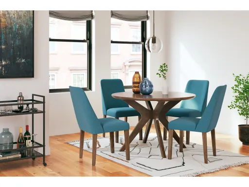 A refreshed take on retro aesthetics. The Lyncott dining package adds an air of playful simplicity to your dining space, capturing the architectural language of mid-century stylings. The casual, yet timeless, finish on each piece creates visual contrast to complete this study in form and function.