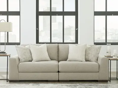 Distinguished yet unassuming, the versatile and visually appealing Lyndeboro loveseat adds a refined touch to any space. Inspired by the dapper look of fine tailored menswear, its rich texture turns heads, while a soft, light gray hue blends effortlessly with other colors in the room. Clean lines and wide track arms embrace a minimalist contemporary style. The loveseat's modular design offers a variety of configurations for flexibility. Plush, reversible deep cushions provide extraordinary comfort and can be rotated for longer life. Accent pillows in soft shades of complementary colors add subtle contrast. This handsome piece will make a memorable impression again and again.