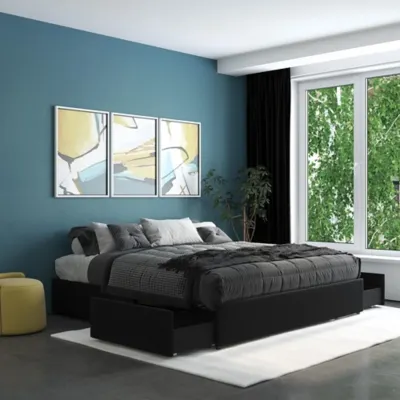 Less is more with the Atwater Living Micah Upholstered Platform Bed. This unadorned bed, upholstered in faux leather, instantly brings a sense of simplicity and calmness to your room. Perfect for small bedrooms, it features two roll-out drawers for additional underbed storage. Its modern low-profile design with clean lines allows you to mix and match it with any decor. The bentwood slat support system not only allows for better airflow to keep your mattress fresher longer, but also adapts to exerted pressure to provide you with the right amount of support. Metal side rails, along with a center metal rail and legs, provide optimal stability and durability so you can enjoy a restful sleep every night.