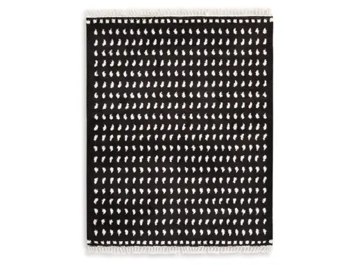 Sink your feet into the modern Minston area rug. Offering a luxurious shag with a woven dot design in black and white, it adds sophistication without sacrificing comfort or durability. A braided tassel edge completes the design of this family-friendly accent rug.