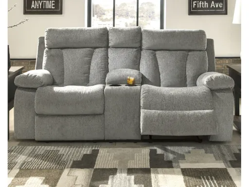 Bring your snacks and beverages and plan for a night with your feet up. This double reclining loveseat is plush in all the right places, and will support you longer than you can binge watch your favorite TV show. The neutral upholstery is ready for a patterned throw blanket and some of your time. Hide the remote in the console and claim your spot on the Mitchiner.