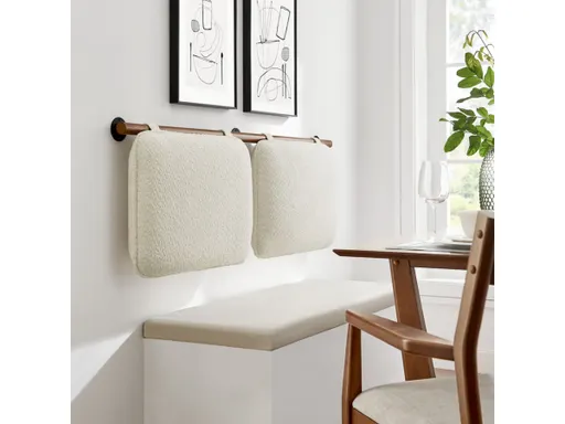 Create a soothing, inviting atmosphere with the Anela Chenille Upholstered Queen Size Headboard, featuring two separate cushions that offer both comfort and style in a space-saving wall-mounted design. Crafted with soft chenille fabric, these headboard pillows are anchored by a solid rubberwood bar, allowing them to float effortlessly above a queen size bed while ensuring stability and bringing a touch of natural texture to the design. For added security, upholstered velcro straps wrap around the wooden bar and fasten to the back of each headboard cushion, providing a snug fit while blending with the chenille fabric for a cohesive, minimalist look. Ideal for guest rooms, dorm rooms, or shared spaces, these floating headboard cushions create a cozy backdrop perfect for sitting up and reading, watching TV, or simply relaxing in bed. They can also be repurposed as comfortable back cushions for a wall bench, offering extra support and a stylish touch to small seating areas. With simple assembly required, this wall-mounted queen size headboard maximizes space while delivering comfort and elegance.
