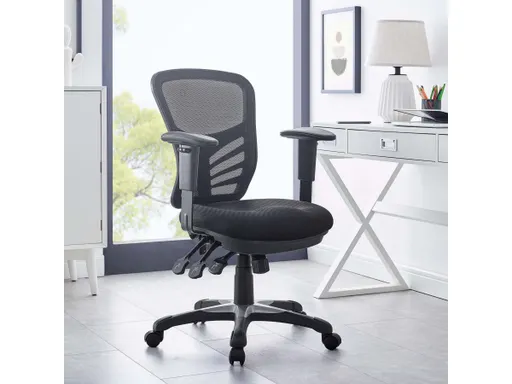 Mark a turning point in your office tasks with this upright and ergonomic office chair. Let the breathable mesh back and plush fabric seat serve as a simple extension to your everyday work ventures. The back height and seat depth are both easily adjustable to fit your height and size, while two sturdy armrests are height adjustable to assist your vertical seat posturing. Tilt tension and lock functions allow you to recline and incline comfortably as needed. Fitted with five hooded dual-caster wheels give yourself the ability to easily glide over carpeted floors while naturally performing tasks without exertion.