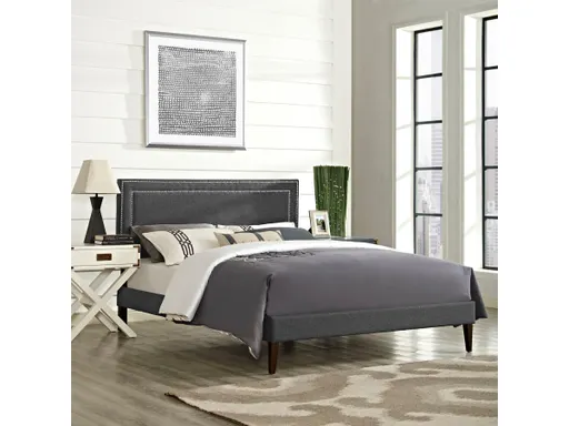 Accelerate your bedroom decor with the Jessamine Platform Bed. Made with a solid wood frame upholstered in polyester fabric, Jessamine features tapered wood legs, plastic foot glides, a stylish headboard, ten sturdy wood slats with a central supporting bar, and two support legs for enhanced stability. Due to the wooden slat support system, the use of a box spring is unnecessary. Jessamine supports memory foam mattresses such as our Aveline series. Perfect for mid-century modern, minimalist, and contemporary bedrooms. Mattress not included. Assembly required.