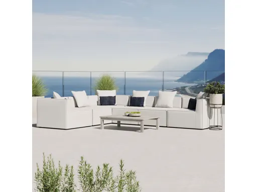 Bring relaxing comfort and modern style to your outdoor living space with the Outdoor Patio Saybrook Upholstered 6-Piece Sectional Sofa. Creating a custom seating area on your porch, deck, poolside, or patio, this all-weather patio sofa features a casual design accented by French piping details. This outdoor sectional sofa is complete with water and UV-resistant fabric upholstery, dense foam padding, and a sturdy aluminum frame with non-marking foot caps. Enjoy good weather and al fresco entertaining with the Saybrook Outdoor Patio Sectional Sofa Collection. Weight Capacity of Each Piece: 300 lbs.