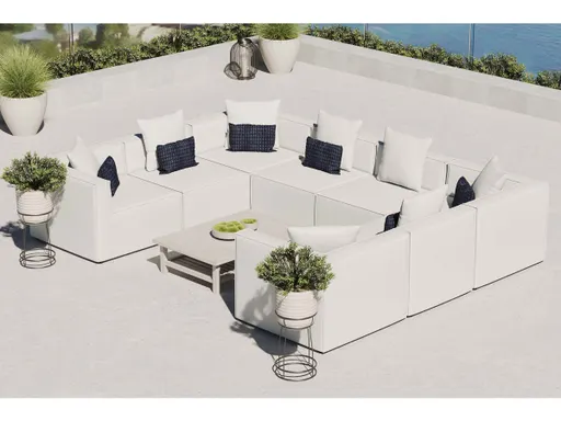 Bring relaxing comfort and modern style to your outdoor living space with the Outdoor Patio Saybrook Upholstered 8-Piece Sectional Sofa. Creating a custom seating area on your porch, deck, poolside, or patio, this all-weather patio sofa features a casual design accented by French piping details. This outdoor sectional sofa is complete with water and UV-resistant fabric upholstery, dense foam padding, and a sturdy aluminum frame with non-marking foot caps. Enjoy good weather and al fresco entertaining with the Saybrook Outdoor Patio Sectional Sofa Collection. Weight Capacity of Each Piece: 300 lbs.