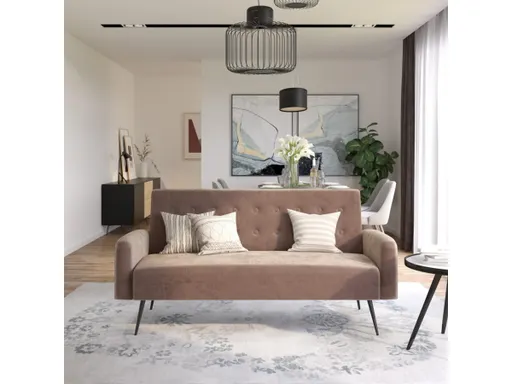 The Novogratz Stevie Futon is the perfect modern sofa bed for those who want practicality without compromising on style. Designed with rounded edges on the armrests, back and seat, the Stevie also features some button tufted detailing in the soft velvet upholstery. This convertible sofa bed is constructed with a strong plywood frame to ensure that it will last you through university and make it into your first apartment. To make this futon even better, the Novogratz Stevie Futon is built with a multi-functional design that allows you to recline the backrest between three position with an easy push or pull. This means you get to choose if you want your futon to be in a sitting position for long hours of studying, in a lounging position for a weekend long movie marathon, or in a sleeping position for hosting your friends overnight during the weekend. Available in multiple trendy colors, the Novogratz Stevie Futon is the ideal option to add a pop of style to your living room, home office or guest bedroom.