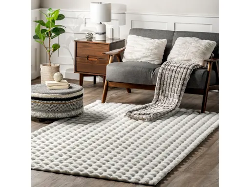 Meet our new show-stopper like no other! This faux rabbit fur rug is crafted of the softest fibers, to elevate the environment in any room you place it in. This area rug is inviting to touch and can be placed at the foot of your bed or a corner of the reading room to create a comfortable space. Sit back, relax, and enjoy the look of a special floor covering that modern-made materials can provide.