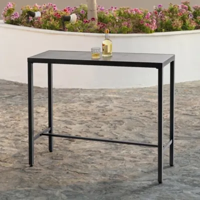 Boasting an impact-resistant 3D-print tempered glass tabletop finished in a timeless black coating, our Nuu Garden Outdoor Iron Rectangular Bar Table radiates elegance. Its adjustable feet offer stability on any terrain, while a comfortable footrest enhances relaxation. Crafted with sturdy iron legs and reinforced by horizontal bars, durability and stability are assured. Maintenance is effortless with easy tabletop cleaning. Comprehensive assembly instructions ensure a smooth setup. Elevate your outdoor space with this versatile and functional addition.