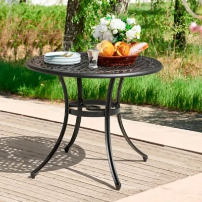 Discover the centerpiece for your outdoor gatherings with this Round Cast Aluminum Dining Table. Crafted with precision and built to endure the elements, this table effortlessly combines style and durability. The circular shape promotes a warm and inviting atmosphere, ideal for bringing friends and family together. Constructed from robust cast aluminum, it boasts exceptional weather resistance, standing up to rain, sun, and more, while retaining its exquisite appearance. The intricate and artful hollow-carved design adds a touch of sophistication to your outdoor area, creating a space that's both functional and aesthetically pleasing.