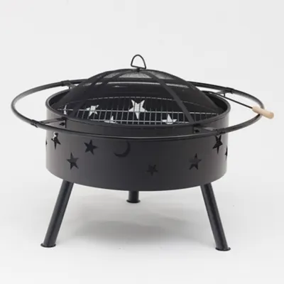 Entertain family and friends well into the night with this unique metal fire pit with whimsical celestial cutout styling. Star and moon cutouts are not just for show, they’re for flow. Each opening allows your fire to last longer due to the circulation of air flow. This robust fire pit is compact and designed for ease of assembly and transport. The collapsible metal leg construction raises the fire pit above ground which provides stability and makes for easy storage. Includes a tight mesh spark guard for safety and a poker so you can keep the coals burning and safely handle the screen. Don't miss out on creating lasting memories with this cool, compact, convenient fire pit.