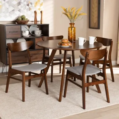 Philip Transitional Light Gray Fabric Upholstered and Walnut Brown Finished Wood 5-Piece Dining Set | Furnzy.com - Shop local furniture stores in one place