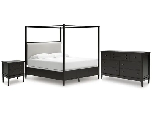 Farmhouse and contemporary design, balanced beautifully. The Portdown bedroom package merges clean-lined silhouettes with round posts for an updated sensibility. Simple inset drawer fronts and a mix of drawer sizes stack up to on-trend form and function. A modern French black finish with deep warm brown undertones perfectly punctuates this casually inviting set.