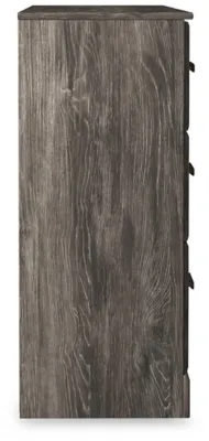 With its clean-lined look and modern attitude, the Ralinksi dresser is a fresh style awakening. A warm gray hue over replicated oak grain easily complements other furniture finishes. Smooth drawer fronts with antiqued pewter-tone handles complete the aesthetic.
