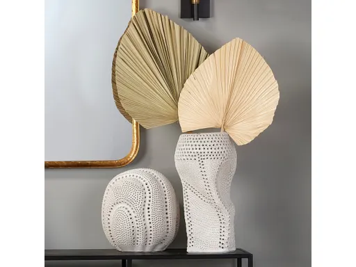 Sure to be a star among your collection, this decorative vase captures the celestial beauty of our moon in porcelain. Featuring an organic shape, matte finish and bold perforated patterns that are created one-at-a-time by talented artisans, ensuring each is an individual work of art.