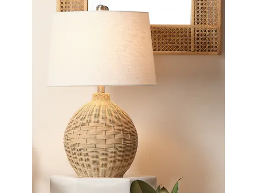 Bring the waterfront inside your home with this gorgeous table lamp. Its body is made of handwoven rattan with a subtle geometric pattern on the side. Paired with a linen cone shade to bring warmth, texture and illumination to any room. Perfect for illuminating a dimly lit armchair or entryway console while adding bold style to your space.