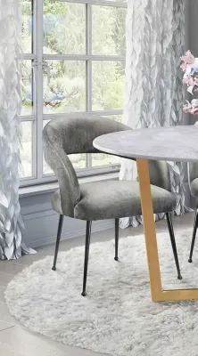 Mid-century modern meets Hollywood glam to form this striking dining chair. Boasting lavishly soft velvet upholstery and stylish stainless steel legs, this versatile chair will enhance any dining area. Available in several color options, the Rocco complements our Maxim dining table beautifully.