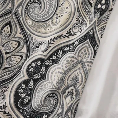 The Messina Window Panels are made with black, grey, and silver tones, creating a dramatic damask pattern and timeless elegance. The grand damask design highlights a sense of luster for a dimensional look. The panels are lined for room darkening comfort and include coordinating tiebacks. Add the Messina valance and bedding for a complete elegant look.